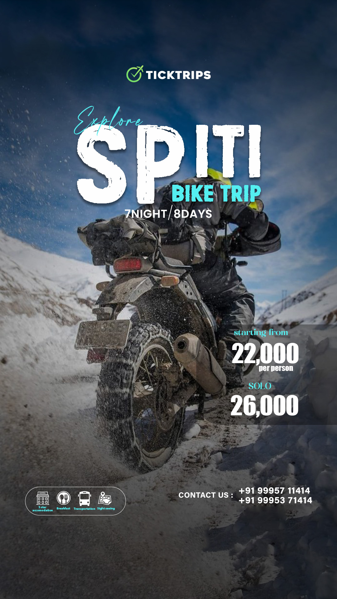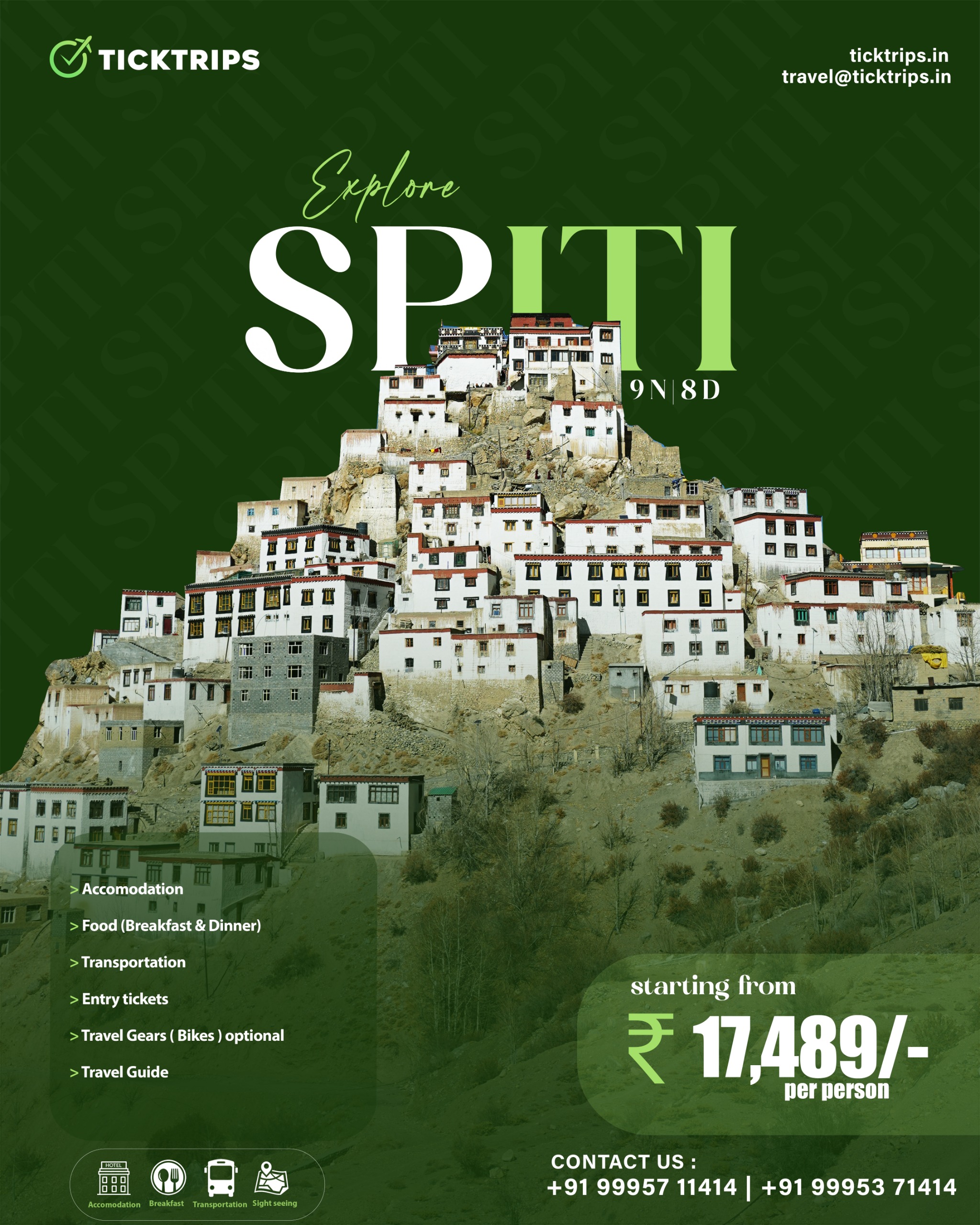 Into the Heart of the Himalayas! Spiti Valley is raw, remote, and breathtaking—where every turn unveils monasteries clinging to cliffs, turquoise rivers cutting through barren mountains, and skies that feel closer than ever. Whether it’s the serenity of Key Monastery or the thrill of high-altitude drives, TickTrips curates your Spiti adventure with care, comfort, and a touch of wonder. Get ready for a journey that’s as soulful as it is scenic.