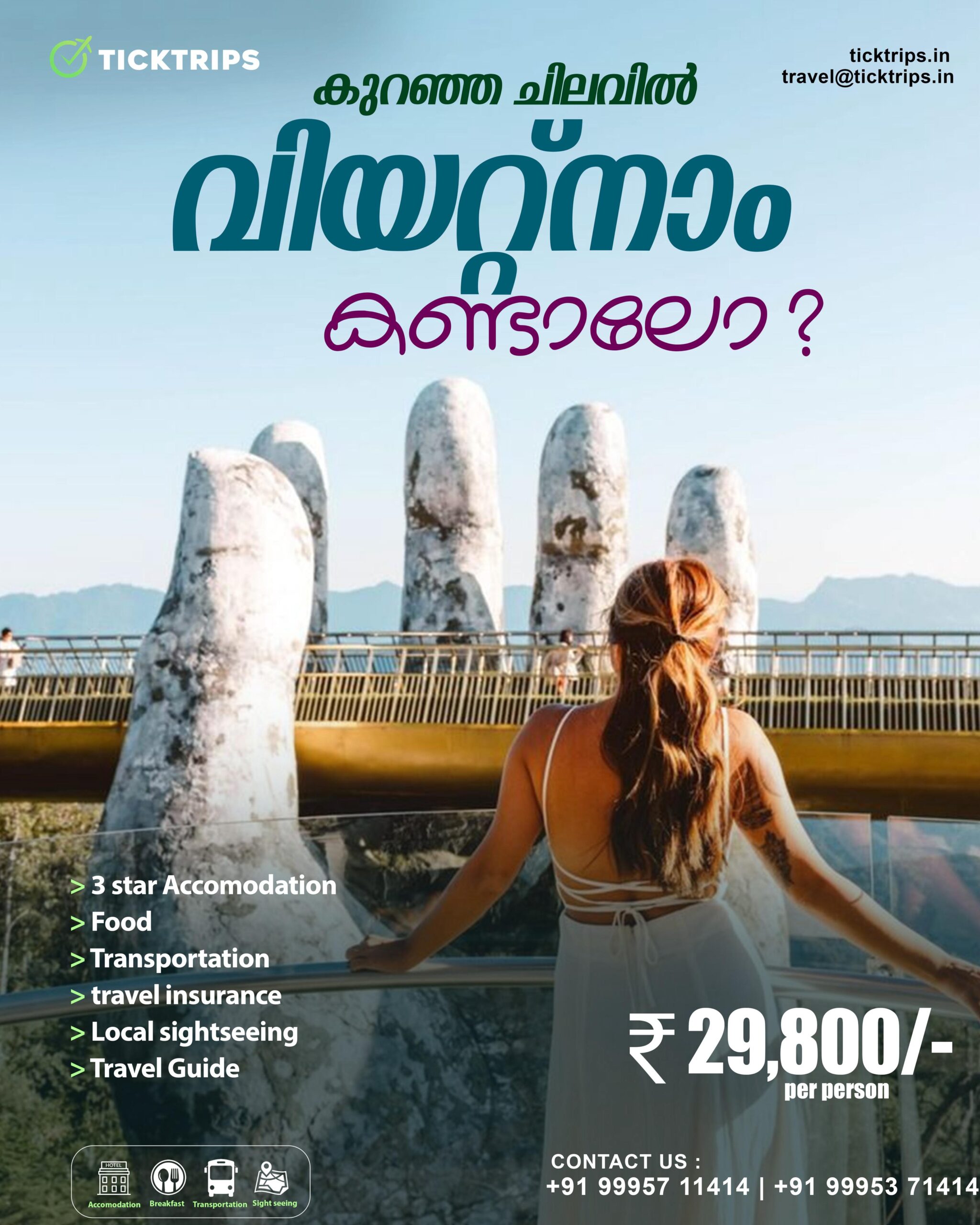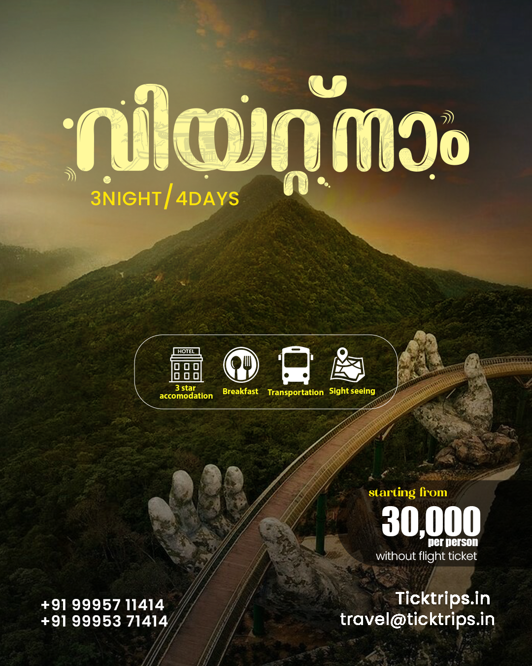 Welcome to a land of rich traditions, epic landscapes, and unforgettable flavors. In just 3 nights and 4 days, explore Vietnam’s mesmerizing highlights – from the majestic Golden Bridge of Da Nang to ancient temples, bustling street markets, and tranquil countryside views. Let the charm of Vietnam unfold through its people, food, and timeless culture. With TickTrips, your trip is not just a visit – it’s a beautifully curated experience with 3-star stays, breakfast, transport, and sightseeing, starting from just ₹30,000 per person (without flight ticket).