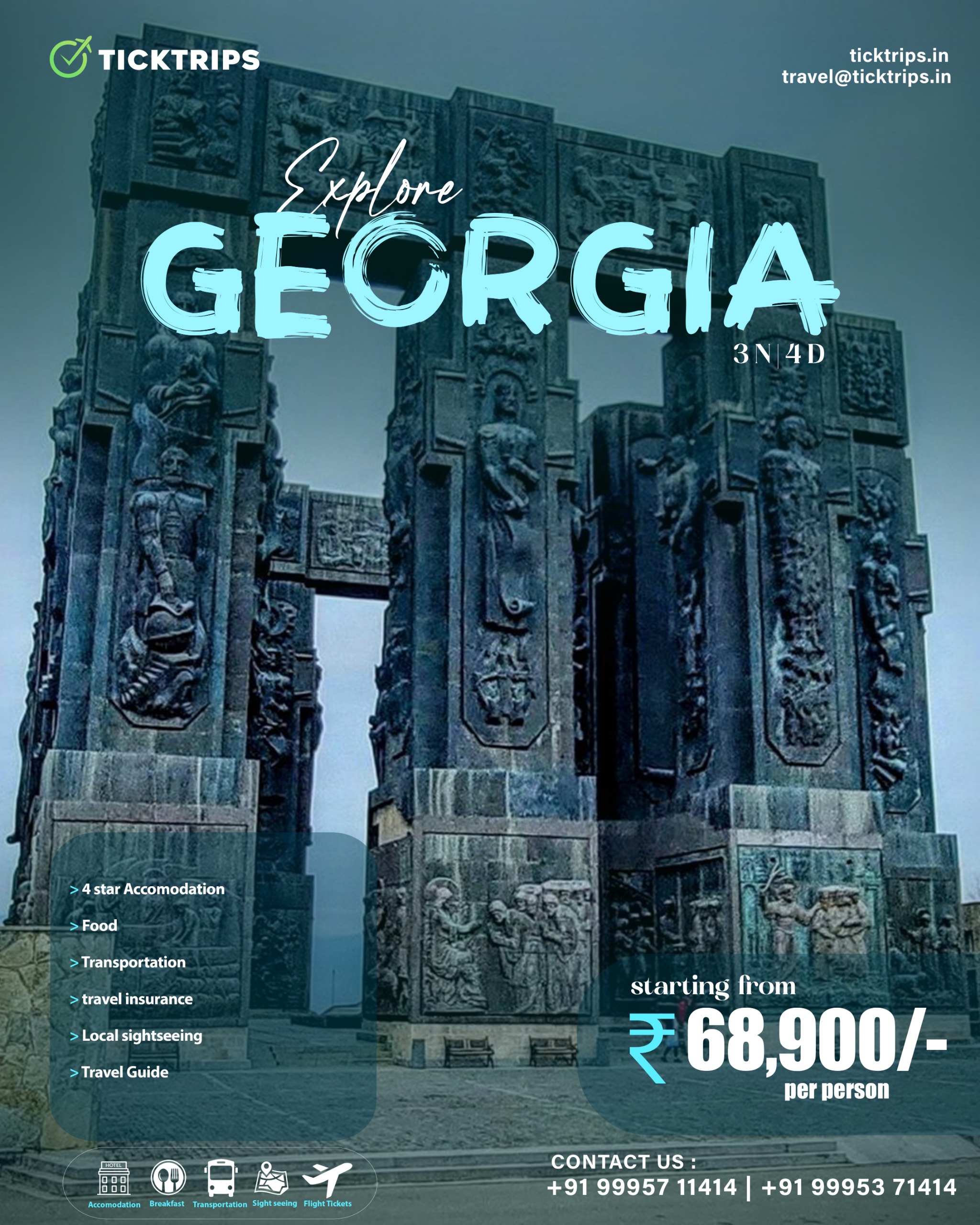 Where Culture Meets the Caucasus! Georgia is a hidden gem filled with cobbled streets, ancient churches, snow-capped mountains, and soulful hospitality. From the vibrant vibes of Tbilisi to the serene beauty of Kazbegi, every corner is a postcard. With TickTrips, your journey through Georgia is effortless, scenic, and packed with unforgettable moments.