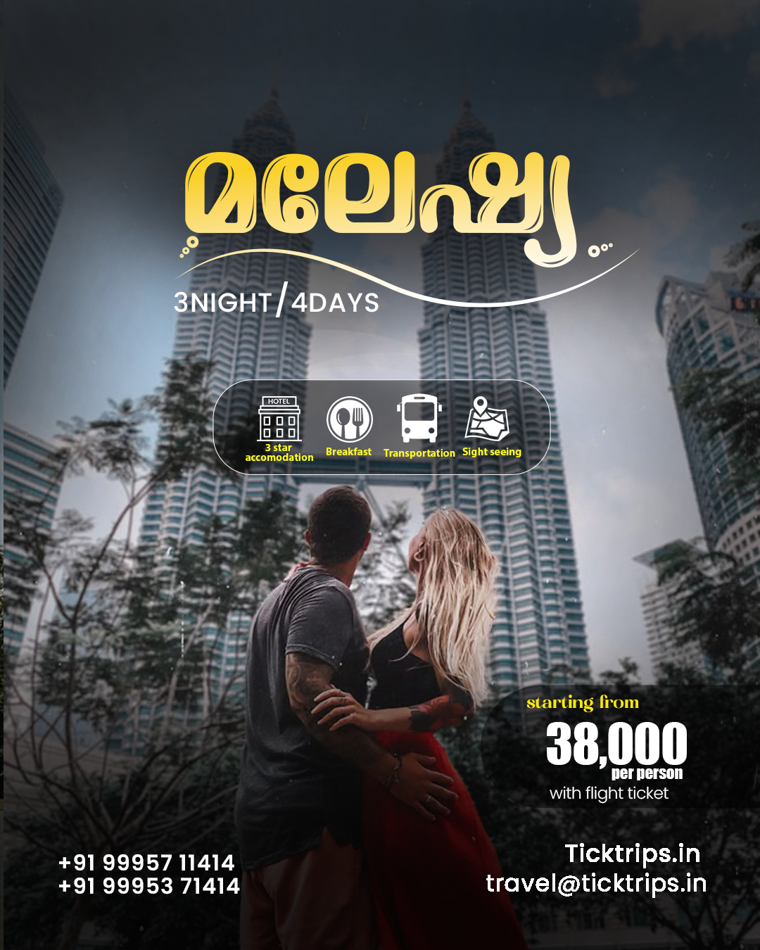 Step into a world where skyscrapers kiss the clouds and rich cultures paint every street. Malaysia offers a perfect blend of luxury, tradition, and adventure – from the awe-inspiring Petronas Towers to the bustling local markets, serene mosques, and mouth-watering street food. Whether you’re strolling through Kuala Lumpur’s chic avenues or soaking in its cultural gems, every moment feels magical. With TickTrips, enjoy 3 nights and 4 days of comfort, curated experiences, and stress-free travel – all starting from just ₹38,000 per person with flight ticket included.