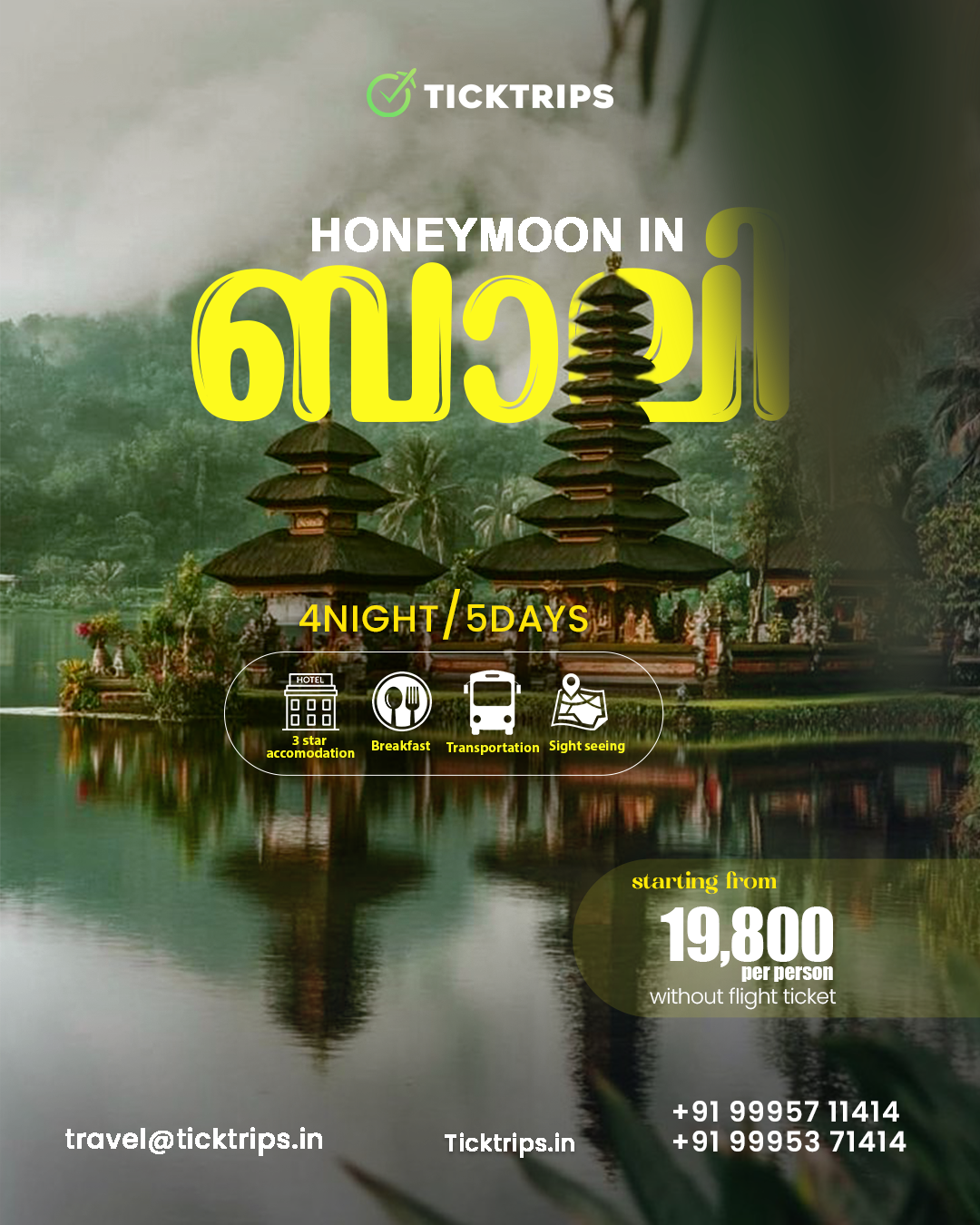 Begin your forever in Bali, the Island of Gods – where emerald rice terraces, exotic beaches, and tranquil temples set the stage for your love story. Whether you’re soaking in the sunsets at Tanah Lot, exploring hidden waterfalls, or enjoying a candlelight dinner by the beach, Bali promises memories that last a lifetime. With TickTrips, your journey is made effortless with 3-star accommodation, daily breakfast, private transportation, and guided sightseeing. Enjoy 4 nights and 5 days of pure romance – starting from just ₹19,800.